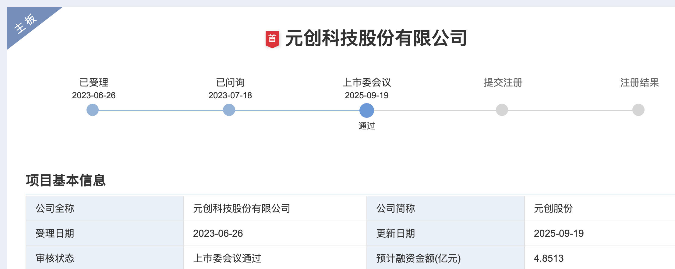 9月19日,深交所上市审核委员会召开2025年第19次上市审核委员会审议会议,审议元创科技股份有限公司(简称“元创股份”)首发事项,最终公司顺利过会。