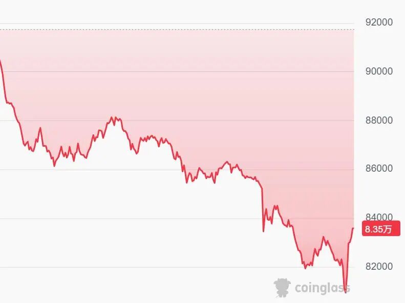 比特币拉升近3000美元至83500美元。今日比特币一度跌破81000美元。