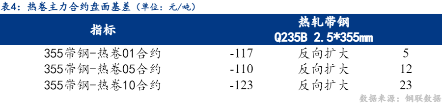 1日市场热卷01合约与唐山355带钢价差反向扩大5元/吨,热卷05合约与唐山355带钢价差反向扩大12元/吨。