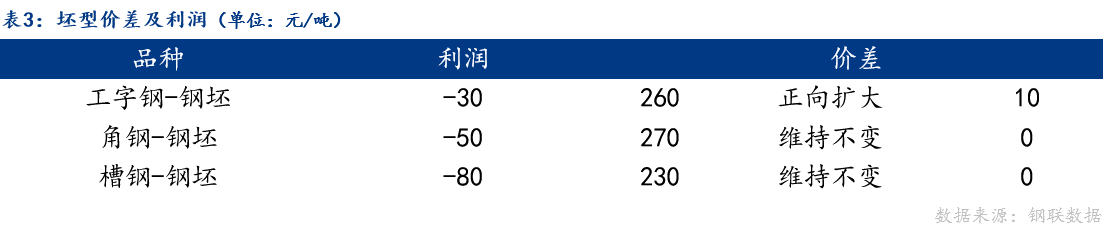 从品种价差来看,今日唐山钢坯与工字钢价差正向扩大,与槽钢、角钢价差维持不变。