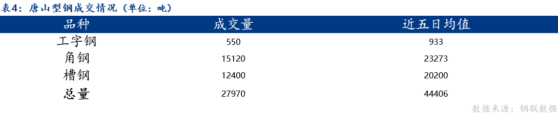2、成交量为20家型钢厂当日成交,其中包括工字钢6家、角钢7家、槽钢7家。
