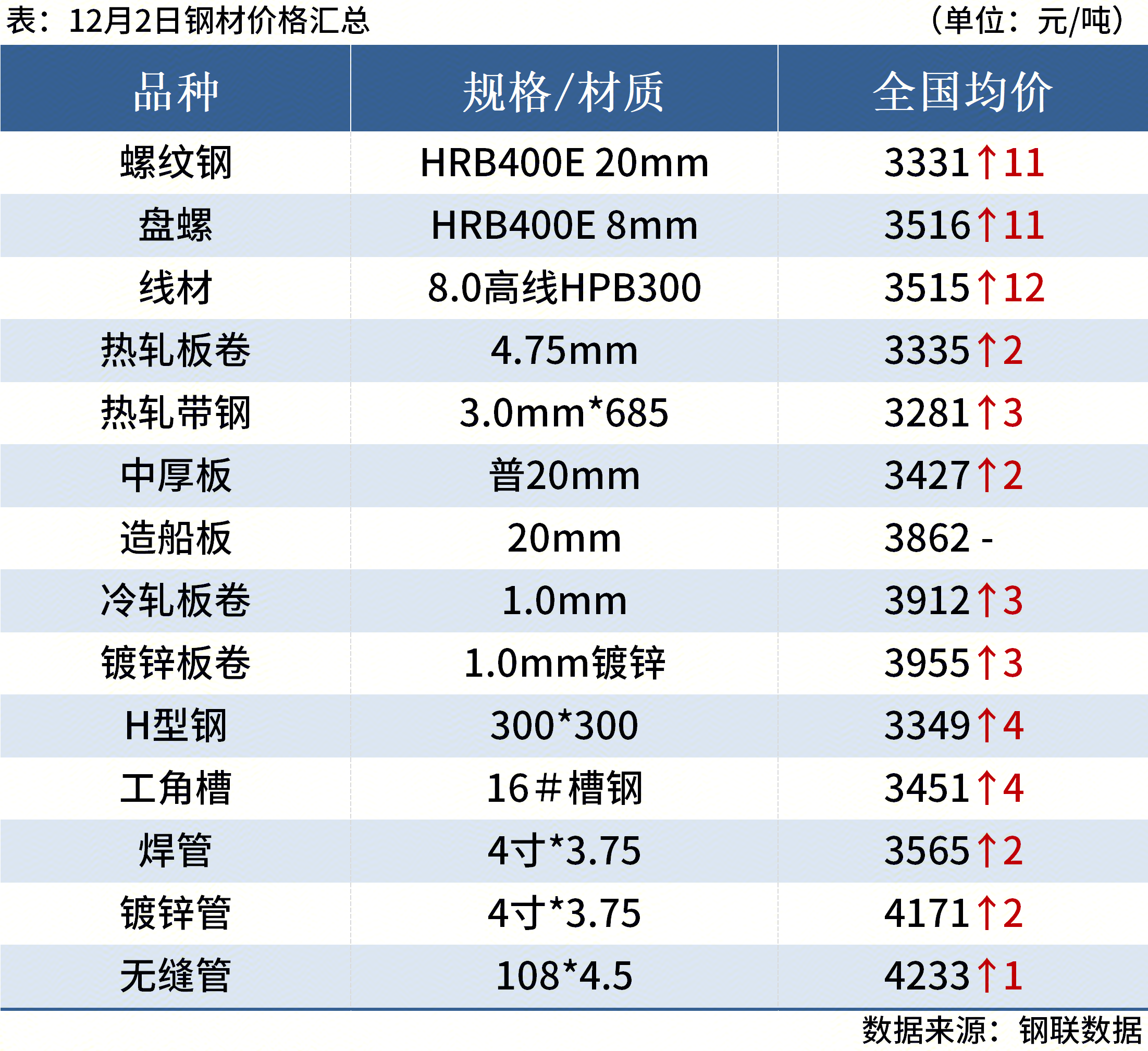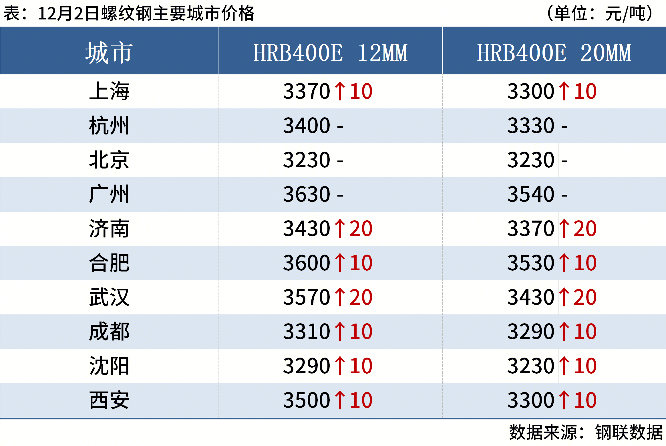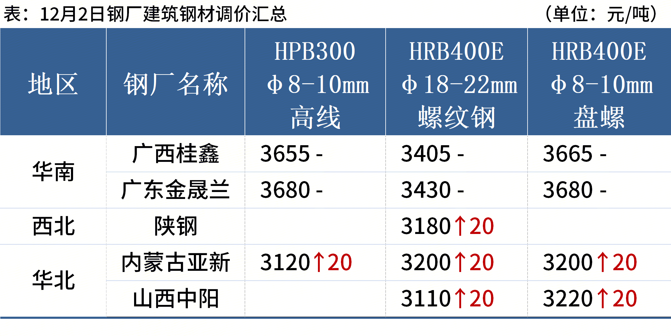 12月2日,3家钢厂上调建筑钢材出厂价20元/吨。