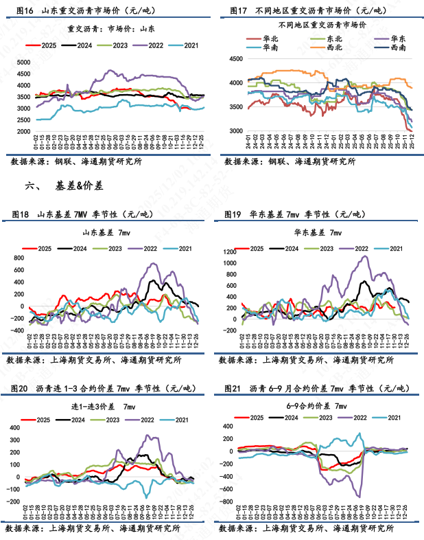 【2】现货市场:①山东重交沥青市场价为2960元/吨,环比-0.7%,7天累计-2.3%。山东基差为+44元/吨,7天累计+23元/吨。②华东重交沥青市场价为3190元/吨,环比持平。华东基差为+274元/吨,7天累计+43元/吨。