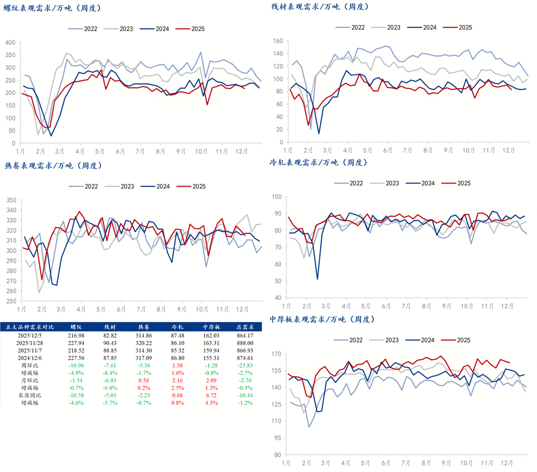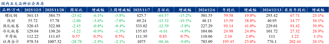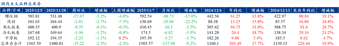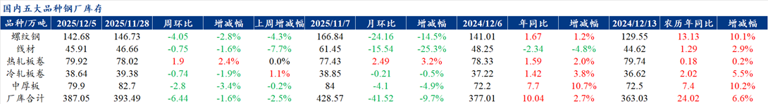 Mysteel解读:聚焦钢铁产业数据(2025年12月4日)——本周五大钢材品种供需双降,库存维持去化,基本面中性偏差