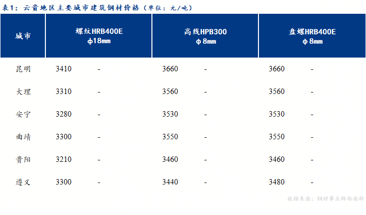 【今日价格】从云贵主要城市建筑钢材价格来看,昆明建筑钢材市场价格稳,贵阳建筑钢材市场价格稳。