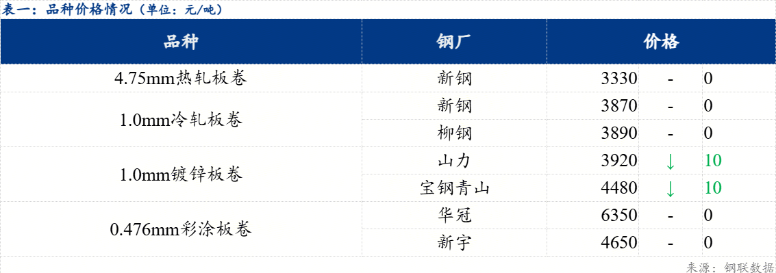 品种价差来看,现镀冷价差为0元/吨,较上一交易日正向缩小10元/吨;镀热价差为560元/吨,较上一交易日正向缩小10元/吨;冷热价差为560元/吨,较上一交易日维持不变。