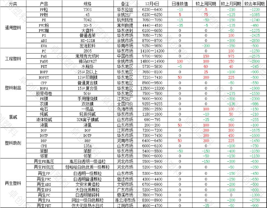 备注:以上表中所取价格为各产品代表市场或是代表区域价格,价格为截止到16:30的收盘价格,更多市场价格及详情内容请关注卓创资讯(301299)各产品网站或手机客户端。