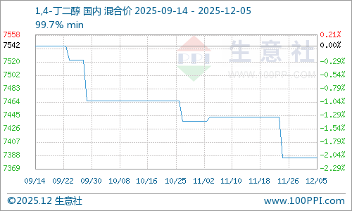 据生意社商品行情分析系统,12月1日至5日,国内BDO价格保持在7385元/吨,价格环比下跌0.77%,同比下跌13.98%。国内BDO市场行情波动不大,延续合约订单交投,现货商谈气氛清淡。供需双方博弈持续,市场行情涨跌困难。