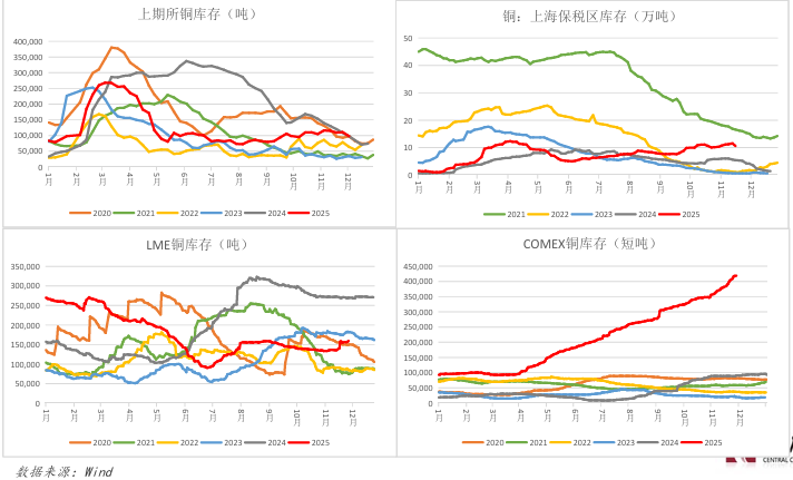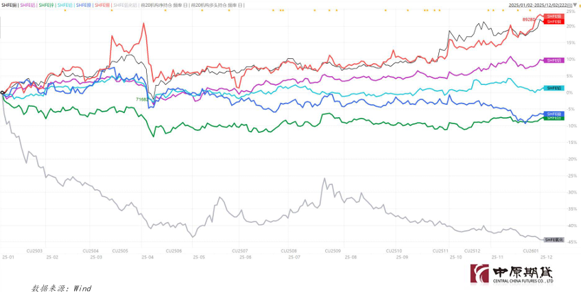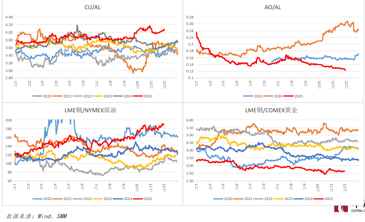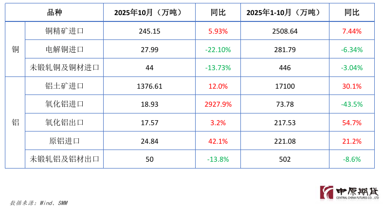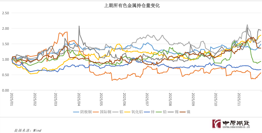 美国政府结束停摆,但10月和11月关键经济数据缺失,对美联储12月议息会议有所影响;随着美联储官 员鸽派发声,市场对12月份降息的预期重新大幅上调,有色金属和贵金属走势均偏强。 基本面看,铜矿紧张预期仍在,关注年底加工费谈判情况;需求端来看,四季度中美经济环比或有承压, 关注年底政策预期。电解铝供应处于高位,库存处于低位。氧化铝中期来看仍处于过剩格局,但盘面估 值已经处于相对低位。