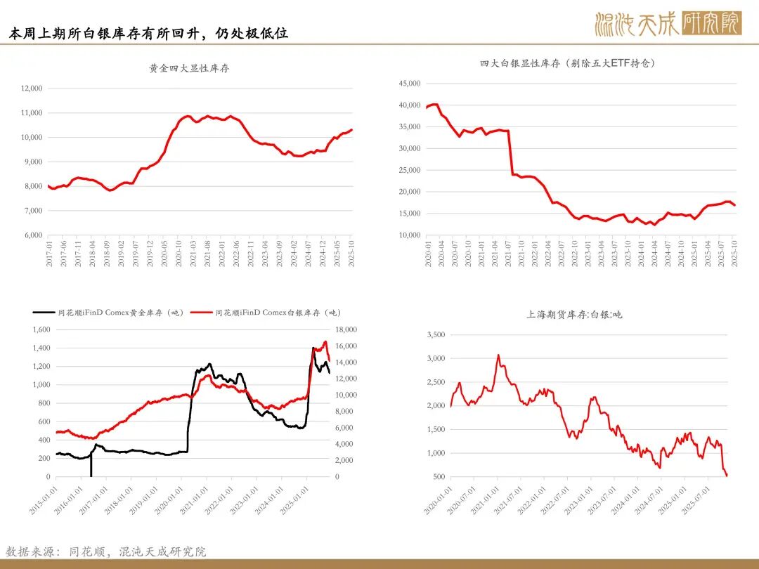 交易逼仓行情的演绎:今年以来持续交割月的逼仓行情反复上演,白银的可流通库存持续低位,在降息预期回升带来的ETF持仓上行情况下,可流通库存进一步走低,这加剧了市场实物紧张,市场在激化情况下形成了明显的突破。