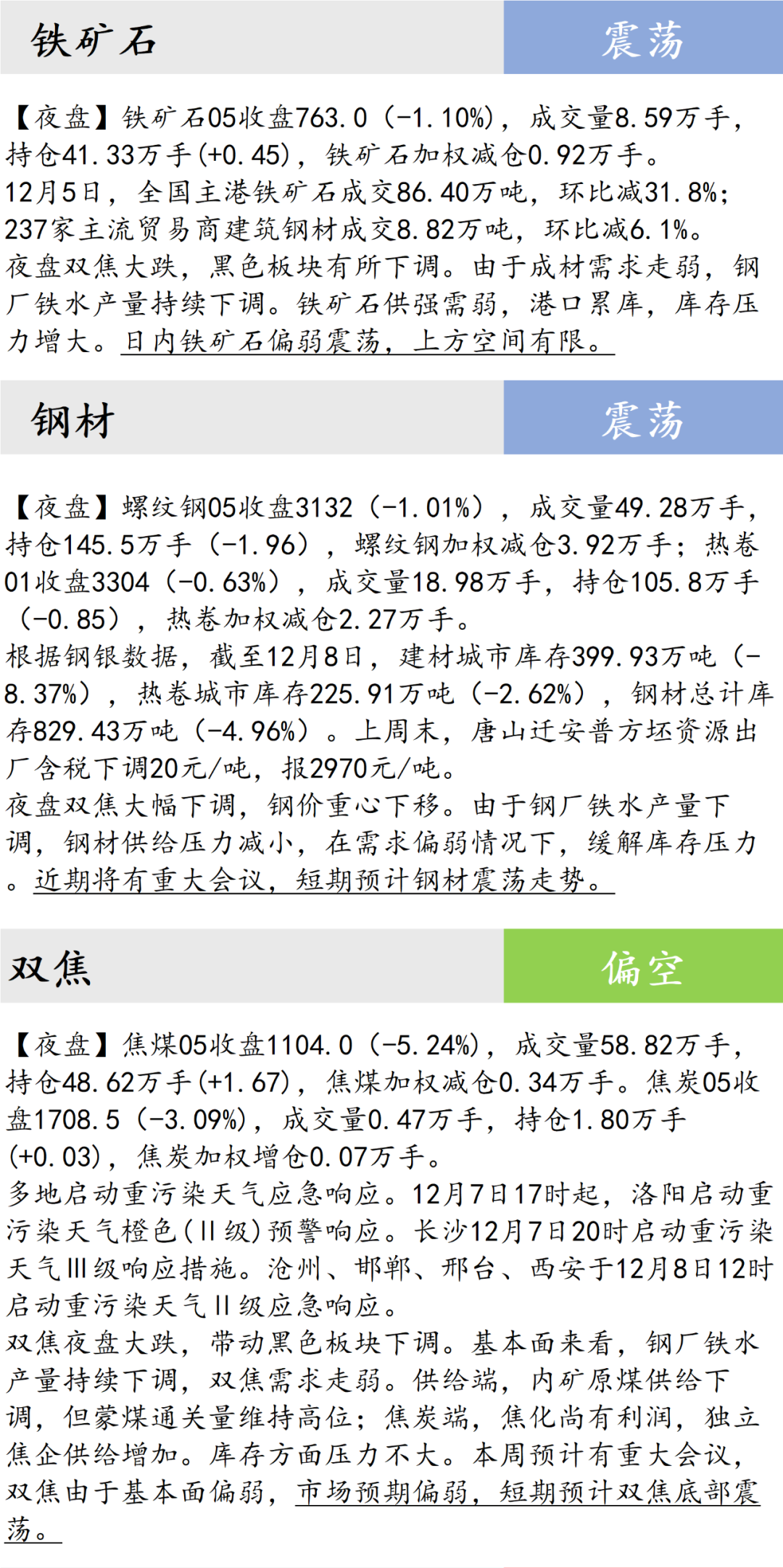 【每日资讯】 市场预期走弱,双焦夜盘大跌(2025年12月8日)