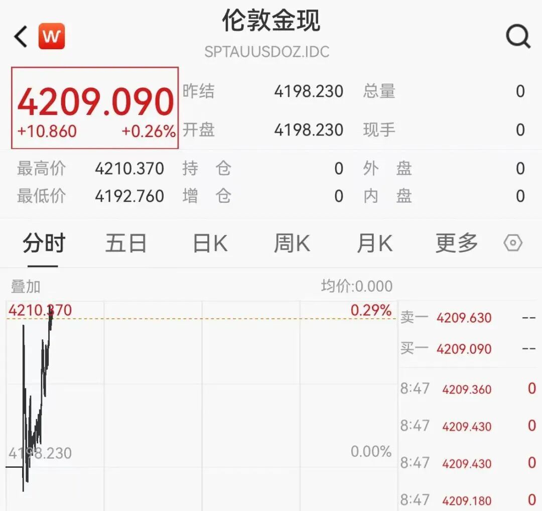 12月8日早盘,黄金、白银高开高走。现货黄金站稳4200美元关口上方;现货白银涨幅为0.43%,报58.544美元/盎司。