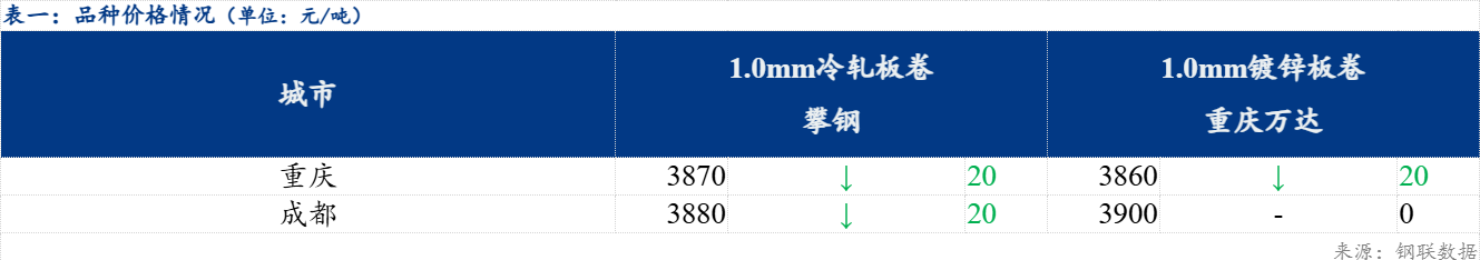 综合来看,目前需求“弱复苏”态势未变,市场对高价资源接受度较低,低价成交一般。预计明日西南地区冷轧及镀锌板卷价格以稳为主。