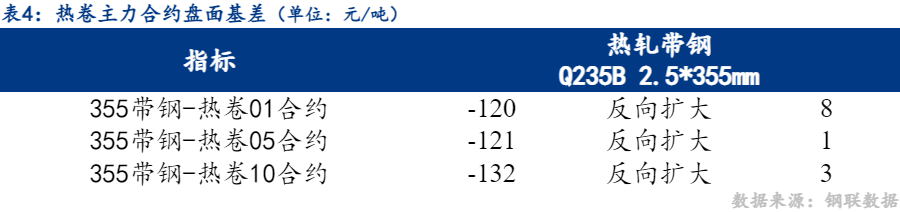 8日市场热卷05合约与唐山355带钢价差反向扩大1元/吨,热卷10合约与唐山355带钢价差反向扩大3元/吨。