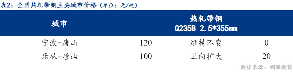 华东与华北地区价差维持不变,华南与华北价差正向扩大20元/吨。