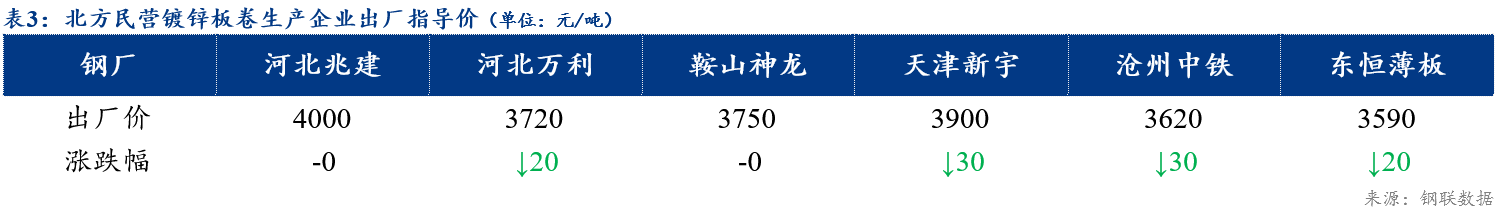 【钢厂调价】今日各地区民营镀锌钢厂出厂价格部分下调20-30元/吨,北方资源出厂价在3720元/吨左右。