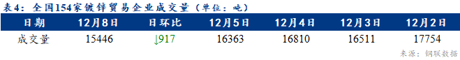 【成交情况】全口径154家镀锌企业出货量为15446吨,较上一交易日减少917吨,减幅5.6%。