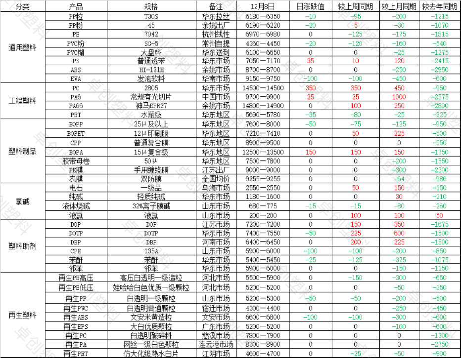 塑料:今日行情汇总及明日展望