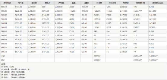 注价格:元/吨; 成交量、持仓量:手; 成交额:亿元;涨跌=周收盘价-上周结算价。