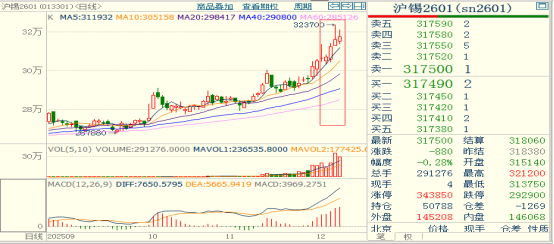 沪锡:短期来看,供需紧平衡格局与降息预期仍将支撑锡价偏强运行,但价格短期涨幅过大后,多头减仓与下游畏高情绪可能引发震荡回调。