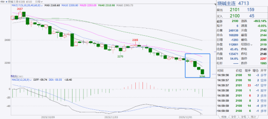 主力合约方面,沪银、沪铜分别以2.06%、1.54%的涨幅领涨,生猪受季节性消费提振上涨2.29%;焦煤、焦炭则因供需宽松重挫6.14%、5.79%,多晶硅延续弱势跌2.65%。
