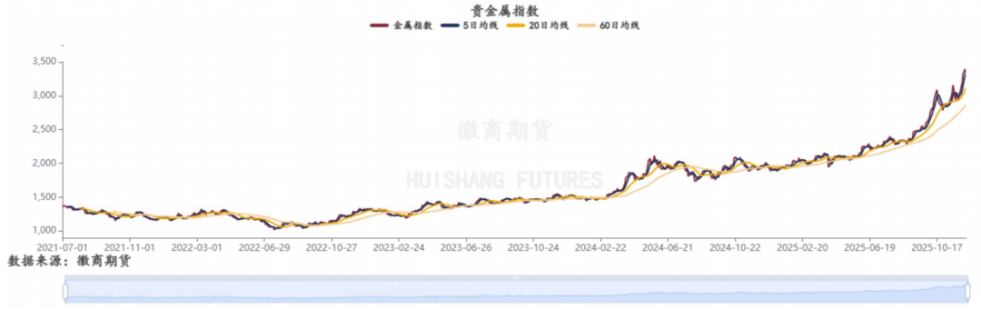 贵金属指数上涨2.85%。美联储政策预期依然是影响贵金属价格走势的重要因素,短期在美联储降息周期、通胀预期升温、白银库存持续下降趋势难以迅速逆转等因素的共同影响下,白银价格将在创纪录高位后继续震荡上行,且白银供应紧张和潜在贸易政策限制将使其表现均优于黄金。中长期基本面角度来看,美国关税贸易政策不仅推升美国通胀压力,对全球其他地区和国家也将产生持续深远的影响,贵金属作为一项战略性资产具备良好的抵御风险能力,贵金属等避险资产需求上升,为其价格提供底部支撑。在美国经济下行压力加大及宽松的货币政策背景下,叠加央行购金潮延续,贵金属未来仍有上行驱动机会,中长期维持偏多思路。