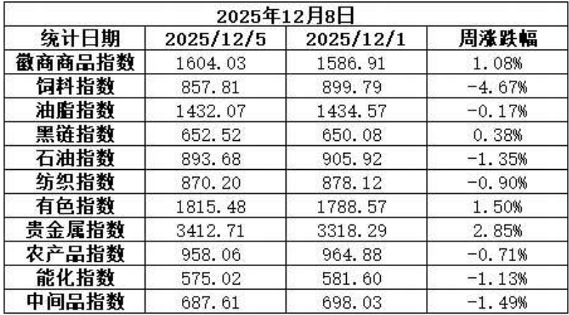 【指数周报】徽商商品指数周报(2025年12月8日)
