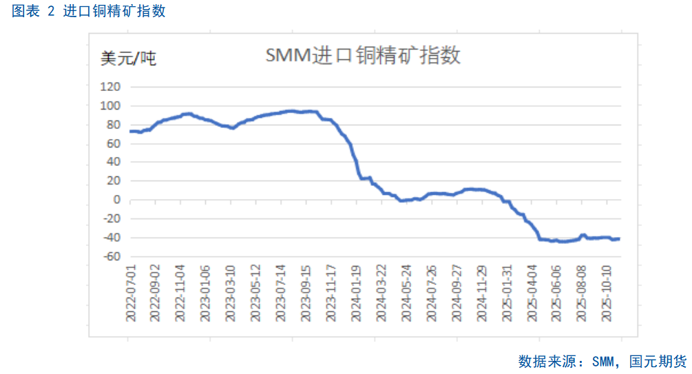 2025年铜精矿供应短缺导致加工费持续下挫,进口铜精矿加工费年初便由正转负,但伴随加工费持续走跌,冶炼厂运营并未明显受到影响。