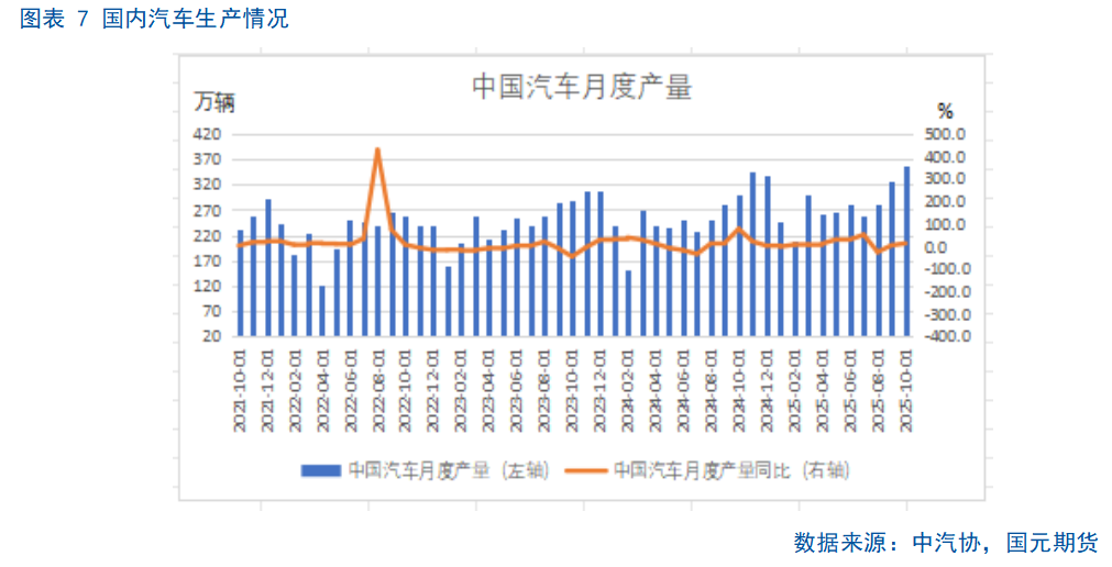 2025年汽车行业产销表现整体积极,新能源汽车产销继续拉动汽车行业。上半年得益于汽车以旧换新补贴加持,汽车行业产销均维持相对较高的增长速度。三季度,青海省、贵州省、内蒙古自治区多地暂停汽车置换更新补贴,不过汽车行业产销依然在旺季带动下持续走高,并且自8月起出现明显加速迹象。