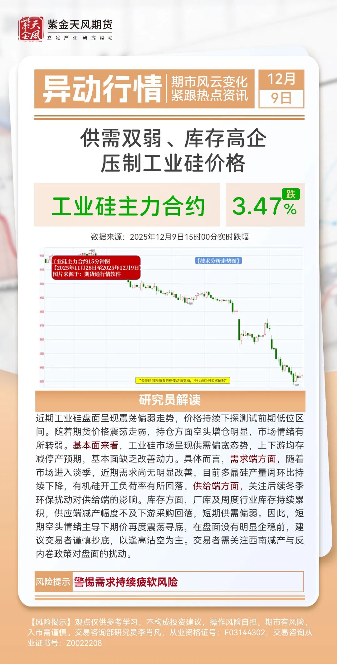 【12月9日异动行情】供需双弱、库存高企压制工业硅价格
