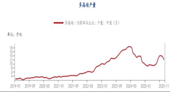据我的钢铁网数据显示,截至 2025年12月05日,多晶硅厂库为 28.77万吨,同比上升3.38%,环比上周增加0.94万吨,整体多晶硅企业库存仍处于缓增趋势。