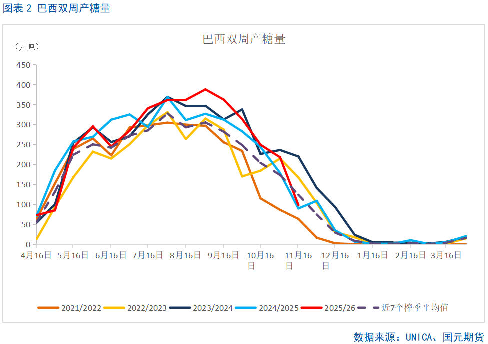 2.1 巴西2025年11月上半月双周产糖量大幅上涨