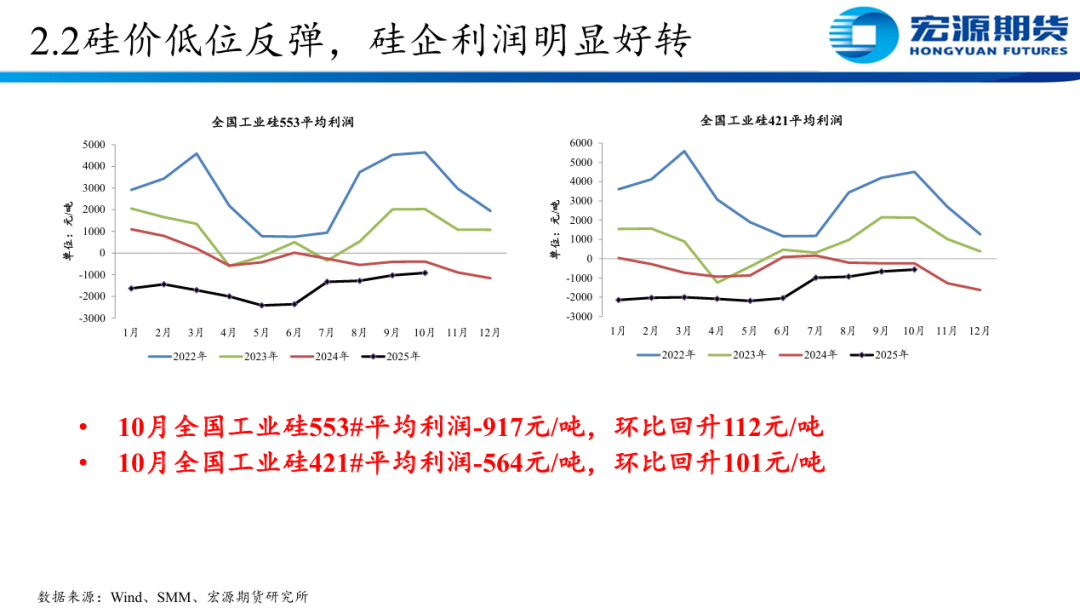 成本&利润:随着西南产区步入平枯水期,电力成本显著抬升, 但硅价小幅波动,高成本硅企基本处于停产状态。