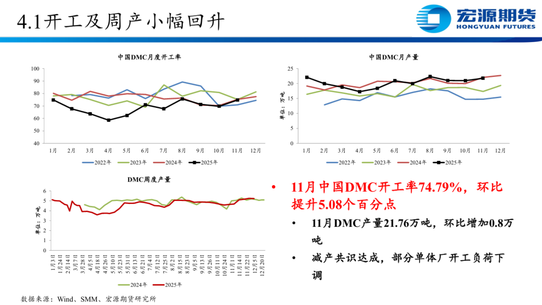 供给端:上周周产25,800吨,环比增加。12月排产来看,产 量增减互现,开工变动主要集中在内蒙古、新疆等地区, 预计产量在11万吨左右波动。