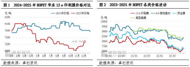 12月中下旬BOPET市场或高位盘整,华东地区12μ印刷膜价格有望维持在7210-7510元/吨,后续BOPET行业或将践行主动减产行动,以继续推动市场向好发展。在2025年7月1日重要会议提出“反内卷”后,工信部于7月18日强调十大重点行业的“稳增长”政策,引起广泛关注。近年来,BOPET行业新增产能增多,导致供应过剩,加剧了行业内卷,压缩了利润率。10月,工信部组织的PTA行业“座谈会”提振了市场信心。为遏制低价倾销,12月3日,BOPET行业龙头企业达成减产共识,决定在现有产能基础上减产20%,春节期间进一步增至50%,以实现供需再平衡,推动行业健康发展。