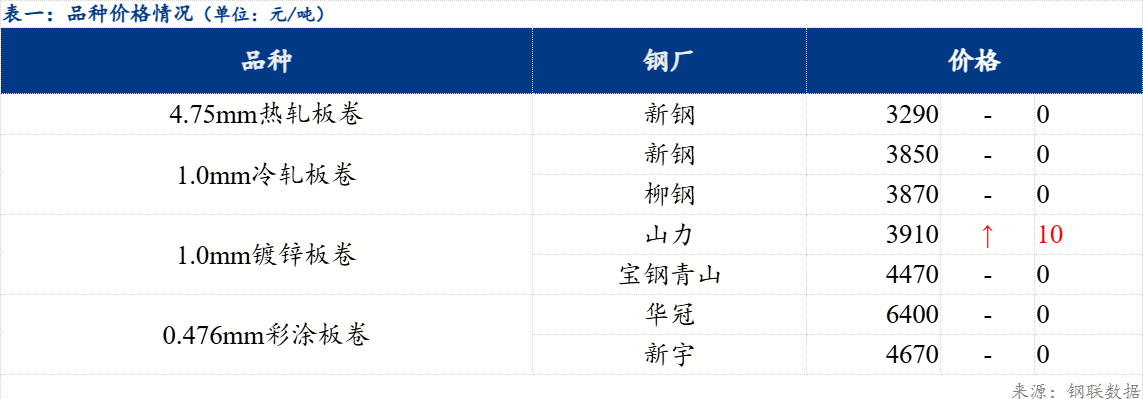 品种价差来看,现镀冷价差为10元/吨,较上一交易日正向扩大10元/吨;镀热价差为590元/吨,较上一交易日正向扩大10元/吨;冷热价差为580元/吨,较上一交易日维持不变。