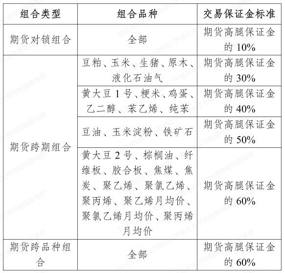 根据大连商品交易所发布《关于调整期货组合持仓交易保证金标准的通知》(大商所发〔2025〕429号)的要求,自2025年12月31日(星期三)结算时起,对期货组合持仓的交易保证金标准进行调整,具体如下: