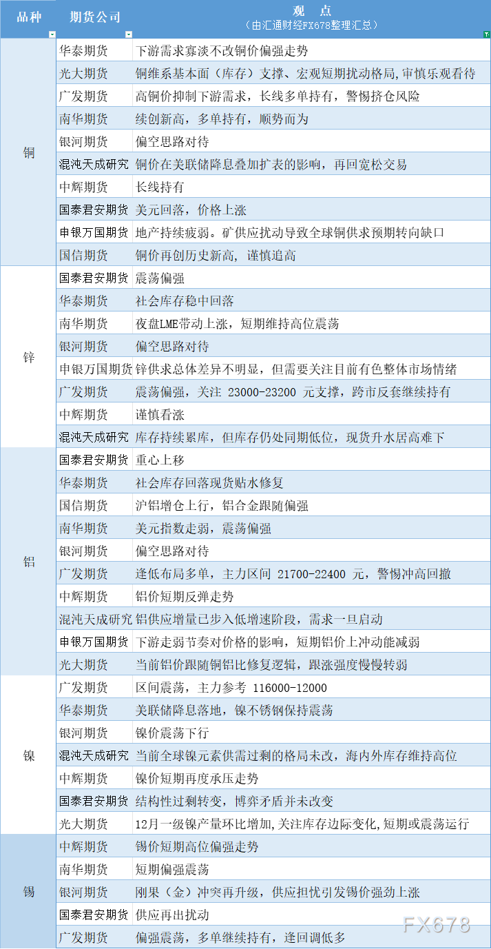 汇通财经APP讯——期货公司观点汇总一张图:12月12日有色系(铜、锌、铝、镍、锡等)。更多详见本文的汇通财经特制图。