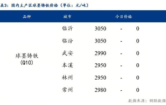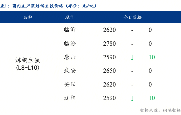 12日全国生铁价格主稳个调,成交一般。其中10城炼钢生铁L8-L10均价2585元/吨,较上一交易日价格下调2元/吨;10城铸造生铁Z18均价2987元/吨,较上一交易日价格持稳;8城球墨铸铁Q10均价2985元/吨,较上一交易日价格持稳。