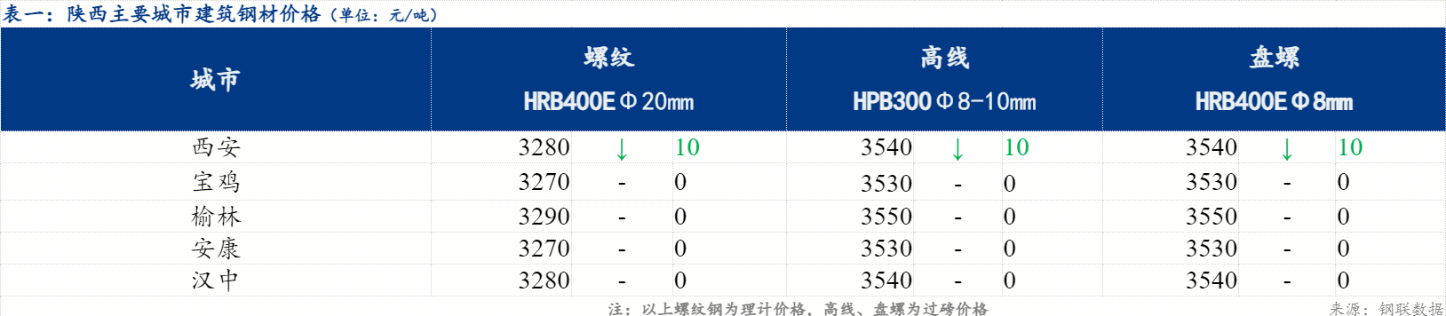 今日陕西省内主导钢厂指导价格暂稳,代理商跟随钢厂政策报价坚挺,市场交易氛围一般,全天现货价格小幅下跌,市场交易偏弱。