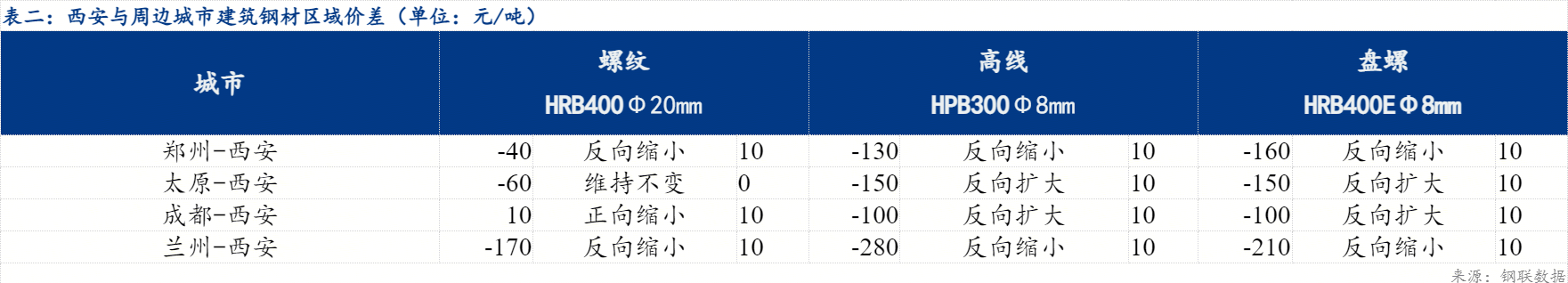 2、本地价格选取钢厂:西安(龙钢),兰州(酒钢),郑州(山西晋钢、高义),成都(威钢、龙钢),太原(首钢长治、美锦);