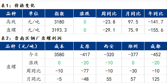 12日,晋南地区钢厂线材价格指数3180元/吨,较前一交易日价格持稳,盘螺价格指数为3193.3元/吨,较前一交易日价格持稳。