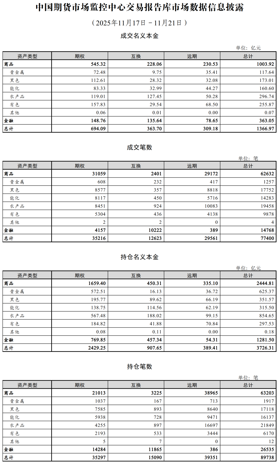 注2:表中成交相关数据为该周逐日累计量,持仓相关数据为周末数据。