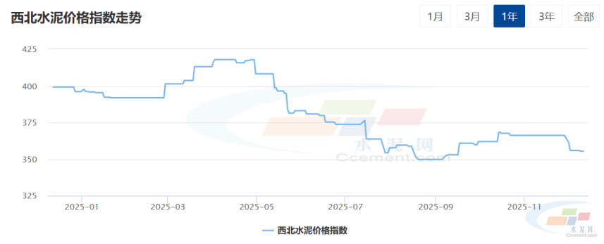 西北:本周西北水泥市场延续供需两淡格局,年末淡季需求疲软,工地大面积停工,市场活跃度显著降低。陕西需求逐步下滑,甘肃、宁夏受降雪影响施工停滞,青海、新疆进入冬歇,整体以弱稳为主。