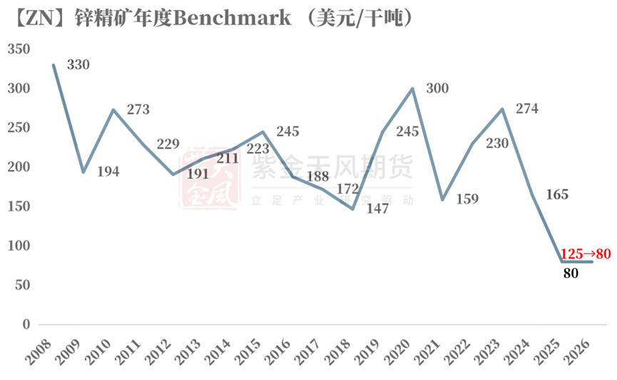 经过我们测算,2026年海外锌矿产量增量预计在24万金属吨,国内预计在15万金属吨,考虑冶炼增速及冶炼损耗后,全球锌精矿供应仍处于相对紧平衡状态。尤其国内仍大幅短缺,国内炼厂锌矿采购压力远大于海外。且从目前年底长单谈判来看,预计加工费难有显著上行,目前市场对26年锌矿TC Benchmark预估再度下调,悲观预期甚至持平去年80美元/干吨的历史低位。