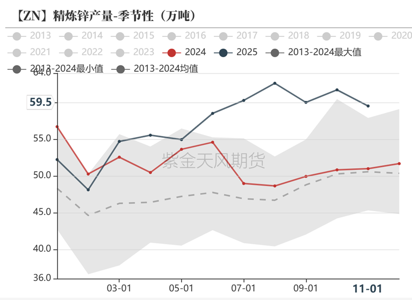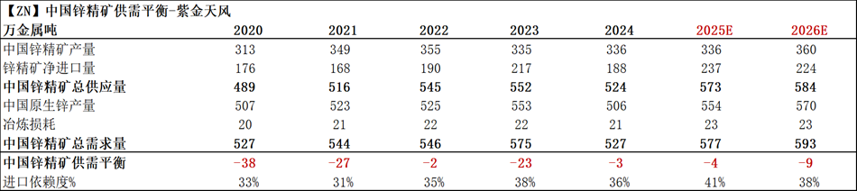 26年随着锌价上涨、TC回升,国内炼厂产量或逐步回升,但考虑25年下半年的高基数,预计26年国内锌锭产量增速整体逐步放缓。
