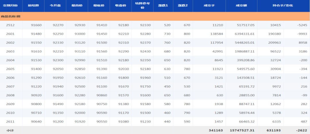 周三LME铜价开始调整,当日(20251211周四)沪铜继续调整,主力2601合约,收盘价在92210元/吨,较上一交易日收盘价上涨360元/吨,涨幅0.39%;美联储议息会议后给出了12月降息、2026年只有一次降息预期和开始购买短期国债等综合信息,铜价表现为继续震荡。