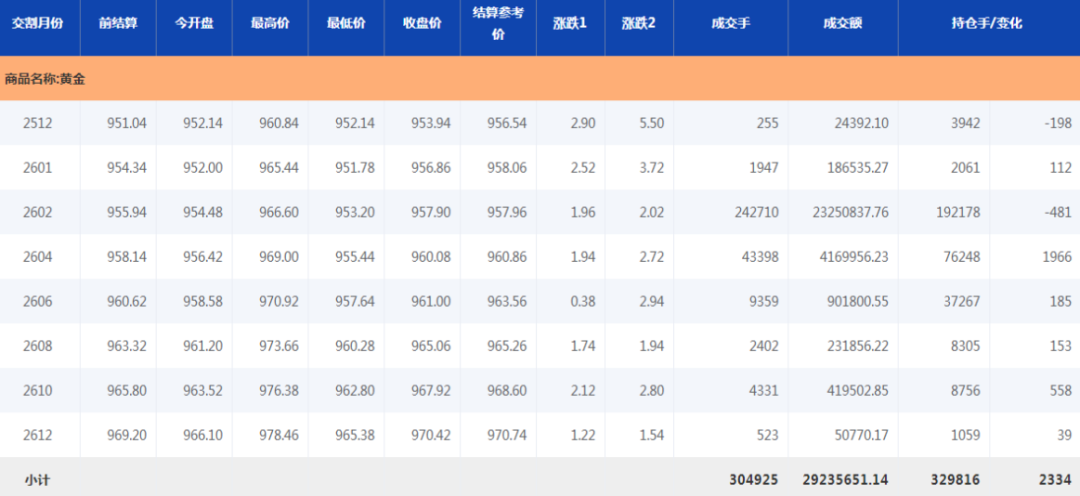 周三伦敦现货黄金震荡走高;当日(2025年12月11日周四)沪金高位回落。今日沪金2602 主力合约,盘中最高至966.6元/克,收盘在957.9 元/克,较盘中最高价相差8.7元/克,较前一交易日上涨1.50 元/克,涨幅 0.16%。美联储如期降息25个基点,但同时对明年的利率展望只有一次降息,而同时又宣布每月购买约 400 亿美元短期国债,向市场释放流动性,这种很综合的做法,导致黄金价格冲高后回落。