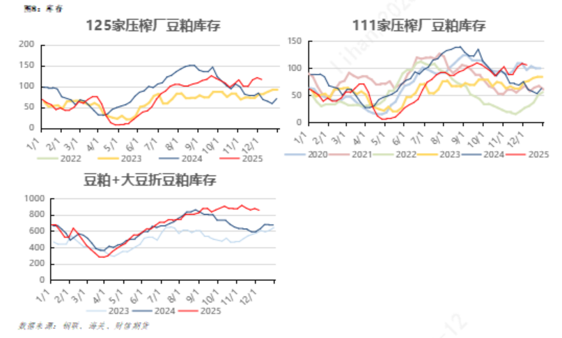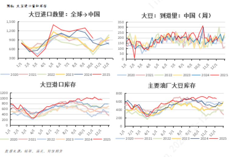 6、据钢联数据显示,国内12月份大豆到港预计900万吨、1月600万吨、2月400万吨,仅从买船来看,1季度或存在供应缺口。