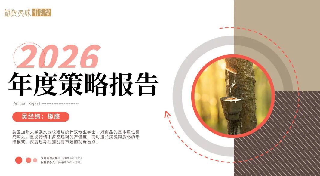 总结:2026年或为全球天胶平衡表中供需双增的一年,但需求增速反超供给增速的可能性大,供需缺口进一步走扩的趋势将回归,全年天胶价格重心有望小幅上移,沪胶运行区间或在14550元/吨到17686元/吨之间。